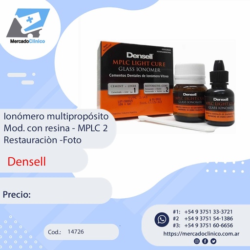 onómero multipropósito Mod. con resina - MPLC 2 Restauracion -Foto - Densell