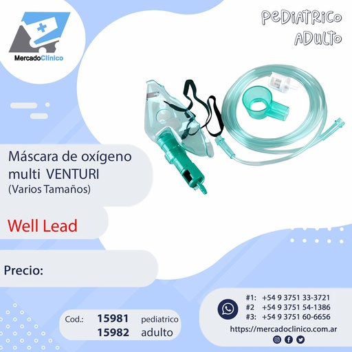 Máscara de oxígeno multi VENTURI adulto - WELL LEAD