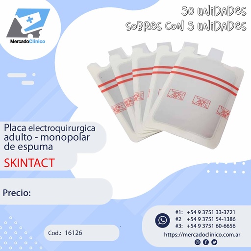 Placa electroquirurgica adulto - monopolar de espuma = SKINTACT