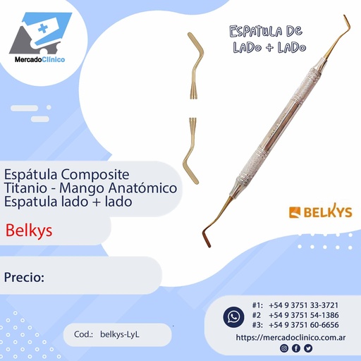 Espátula Composite Titanio - Mango Anatómico - De Lado + Lado - Belkys