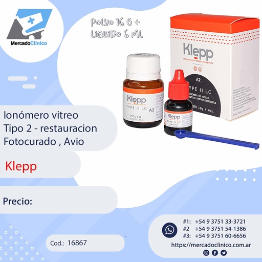 Ionómero vitreo Tipo 2 LC- restauración Fotocurado , Avío - Klepp