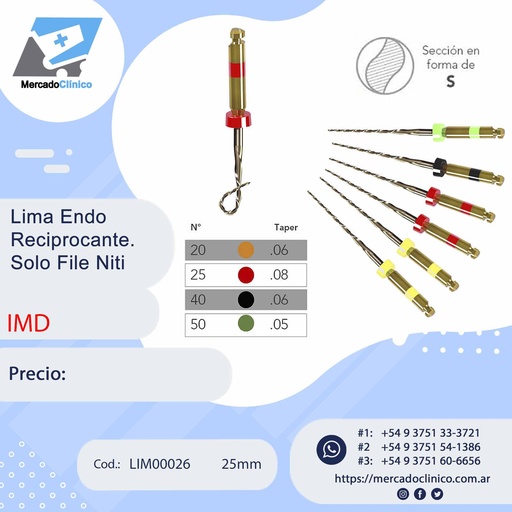 Lima Endo Reciprocante. Solo File Niti - 25mm - IMD