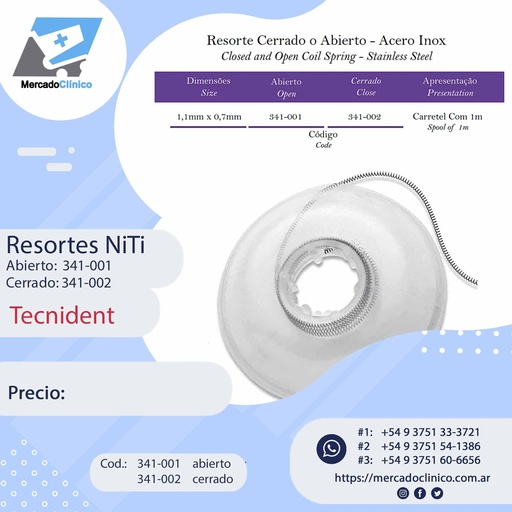 Resortes Niti - Abierto o Cerrado - 1 metro - Tecnident