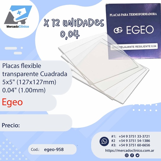 Placas / láminas Rígidas transparente Cuadrada 5x5" (127x127mm) - 0.04" (1 mm) - x 5 un - Egeo