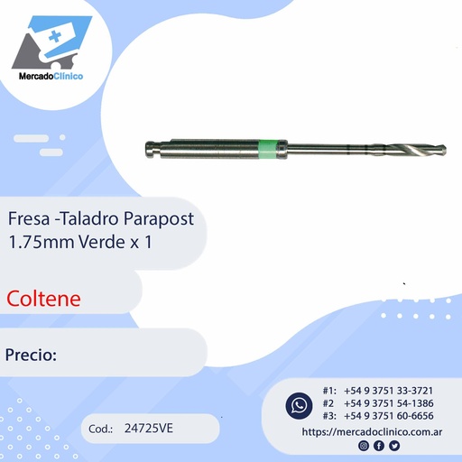 Fresa - Taladro Parapost 1,75. Verde x 1 - Coltene