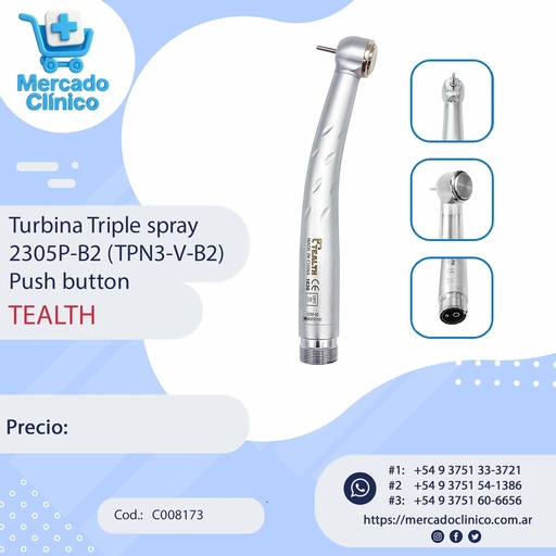 Turbina torque, 3 spray, push button, 2305P‐B2 (TPN3‐V‐B2). TEALTH