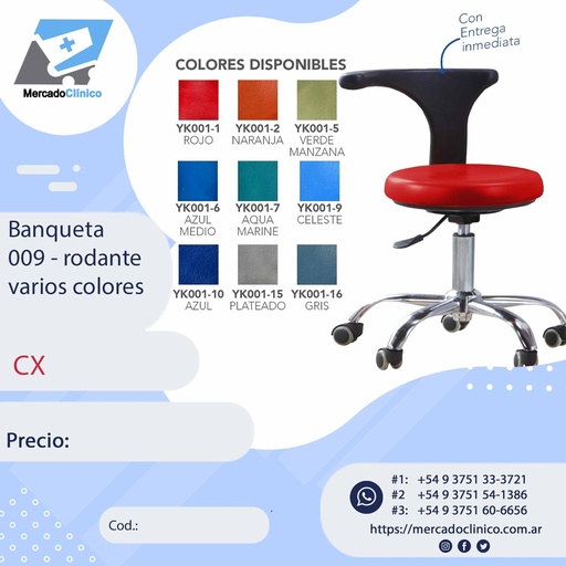 Mesa / Bandeja auxiliar para cualquier sillon dental - REDONDO - CX