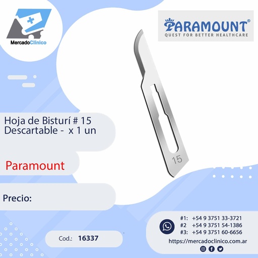 Hoja de Bisturí # 15 Descartable - x 1 un - Paramount
