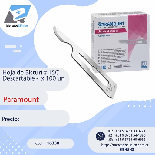 Hoja de Bisturí # 15C Descartable - x 1 un - Paramount