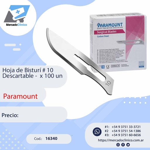 Hoja de Bisturí # 10 Descartable - x 1 un - Paramount