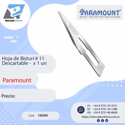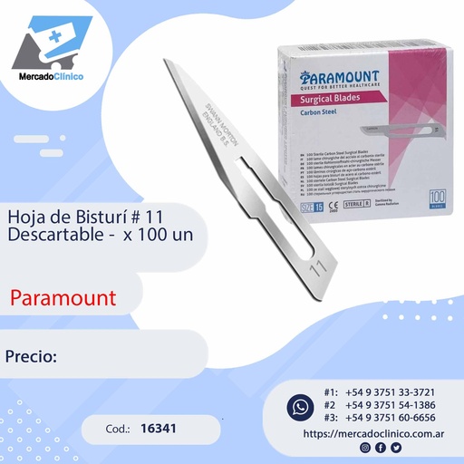 Hoja de Bisturí # 11 Descartable - x 1 un - Paramount