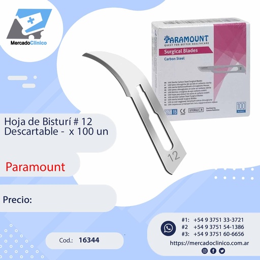 Hoja de Bisturí # 12 Descartable - x 1 un - Paramount