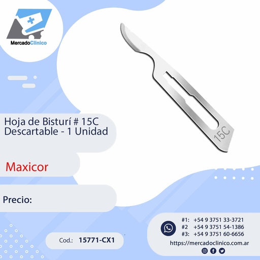 Hoja de Bisturi # 15C - descartable - 1 Unidad - MAXICOR