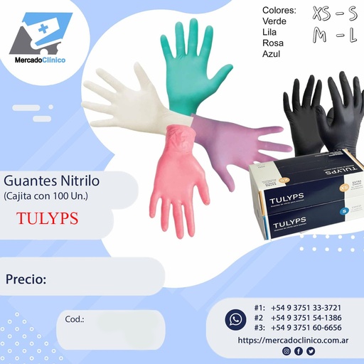 Guantes NITRILO - Cajita X 100 Un - Tulyps