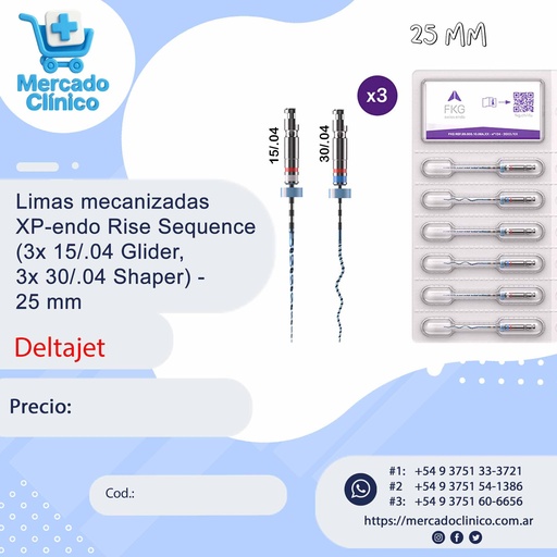 Limas mecanizadas XP-endo Rise Sequence (3x 15/.04 Glider, 3x 30/.04 Shaper) - 25 mm - FKG