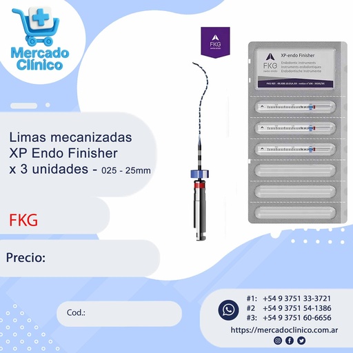 Limas mecanizadas XP Endo Finisher - Retratamiento - x 3 unidades - 025 - 25mm - FKG