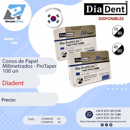 Conos de papel PROTAPER .04 y .06 - X100 - Milimetrados - Diadent