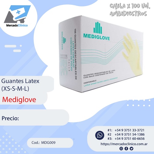 Guantes LATEX - Cajita x 100 Un - Mediglove
