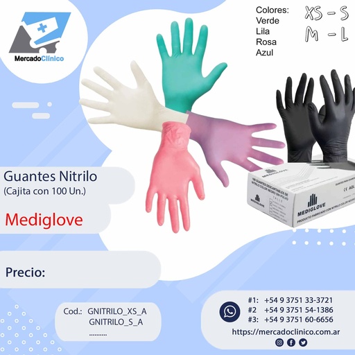 Guantes NITRILO - Cajita X 100 Un - Mediglove