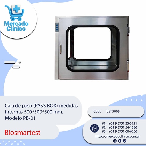 Caja de paso (PASS BOX) medidas internas 500*500*500 mm. Modelo PB-01 - Biosmartest