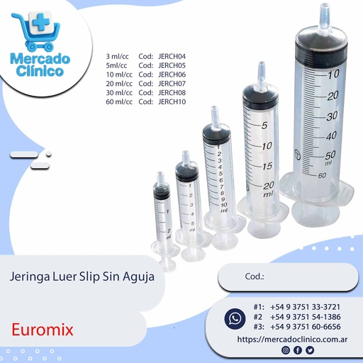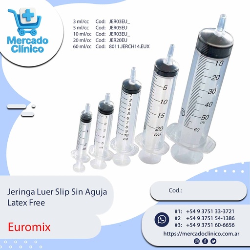 Jeringa Luer Slip Sin Aguja Latex Free X 1 unidad- Euromix