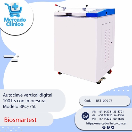 Autoclave vertical digital 75 lts con impresora. Modelo BKQ-75L - Biosmartest