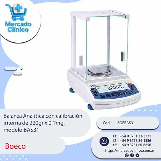 Balanza Analítica con calibración interna de 220gr x 0,1mg, modelo BAS31 - Boeco