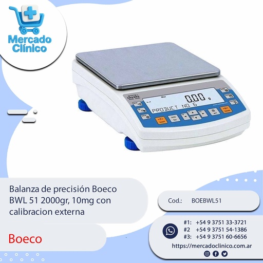 Balanza de precisión Boeco BWL 51 2000gr, 10mg con calibracion externa - Boeco