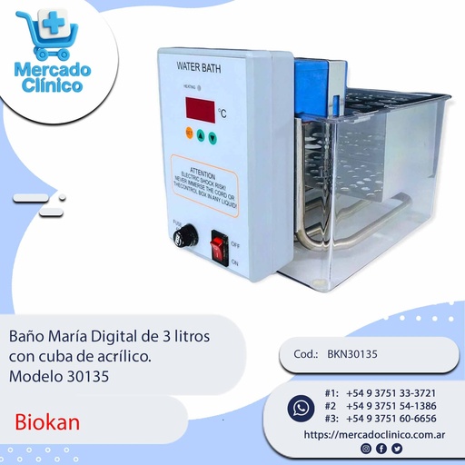 Baño María Digital de 3 litros con cuba de acrílico. Modelo 30135 - Biokan