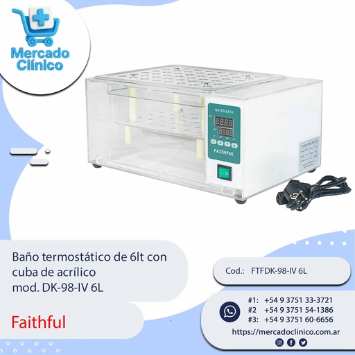 Baño termostático de 6lt con cuba de acrílico mod. DK-98-IV 6L - Faithful