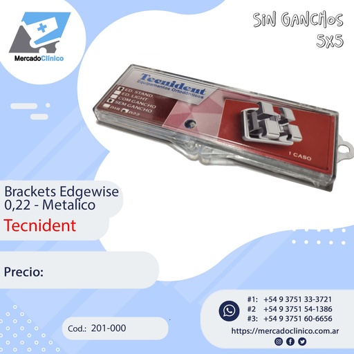 Brackets Edgewise 0,22 - Sin ganchos - Standard - 201-000 - Tecnident