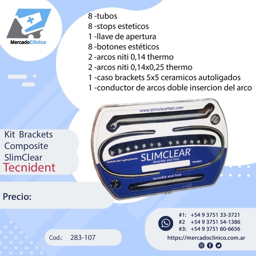 KIT Brackets ESTÉTICO Autoligado - SLIMCLEAR 0,22 - 7x7 - Tecnident - 283-107
