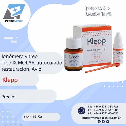 Ionómero vitreo Tipo IX MOLAR, autocurado restauración, Avio - KLEPP