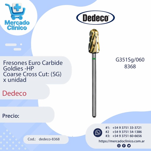Fresones Euro Carbide Goldies -HP Coarse Cross Cut: (SG) x unidad - Dedeco