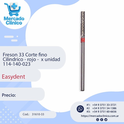 Freson 33 Corte fino Cilíndrico - rojo - x unidad 114-140-023 - Easydent