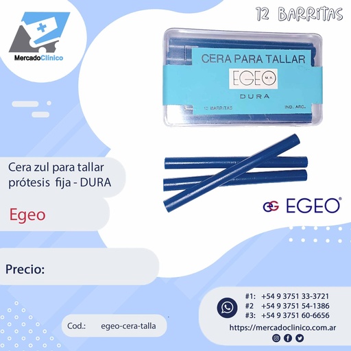 Cera Azul para tallar prótesis fija - DURA x 12 unidades / barritas - Egeo