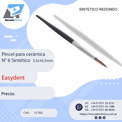 Pincel para cerámica N° 6 Sintético 3.5x16.5mm3.5x16.5mm - Easydent